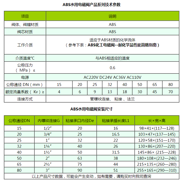 【產(chǎn)品型號(hào)】DN65 ABS化工水用電磁閥