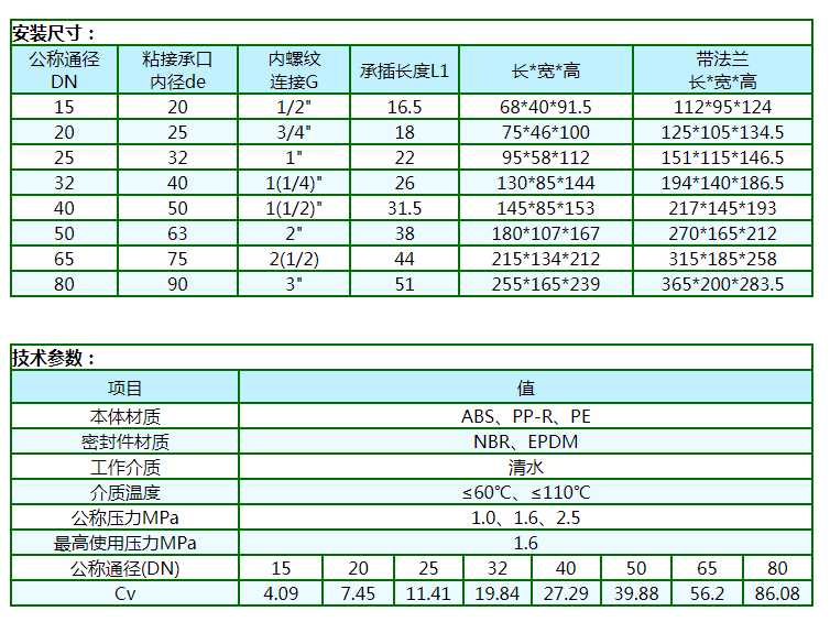 本產(chǎn)品民用系列選用國(guó)際通用型食品級(jí)工程塑料(ABS、PP-R、PE等)注造。工業(yè)用系列選用進(jìn)口阻燃型高強(qiáng)度工程塑料(PC等)注造。產(chǎn)品具有重量輕、耐腐蝕、不生銹、不結(jié)垢、導(dǎo)冷不結(jié)霜、導(dǎo)熱系數(shù)低,絕緣性能好,環(huán)保衛(wèi)生等優(yōu)點(diǎn)。啟閉原理上:采用浮動(dòng)閥芯,利用流體壓力差,誘導(dǎo)式啟閉的專利技術(shù)成果。因啟閉時(shí)無(wú)磨損(屬接觸型啟閉),而解決了傳統(tǒng)閥門因強(qiáng)制性啟閉而造成的啟閉部件和密封件磨損所引起的“跑、冒、滴、漏”的歷史性難題。它具有安裝使用方便,節(jié)能節(jié)水效果顯著(可節(jié)約傳統(tǒng)閥門的外泄內(nèi)漏所浪費(fèi)掉的水),使用壽命長(zhǎng)及物美價(jià)廉等特點(diǎn)。